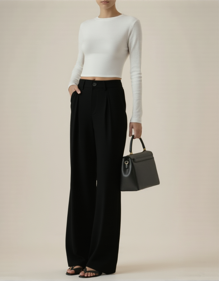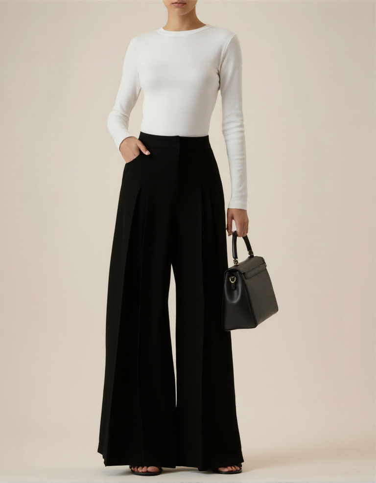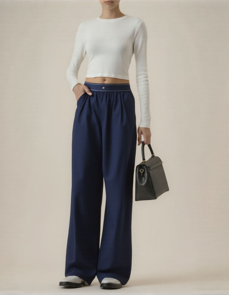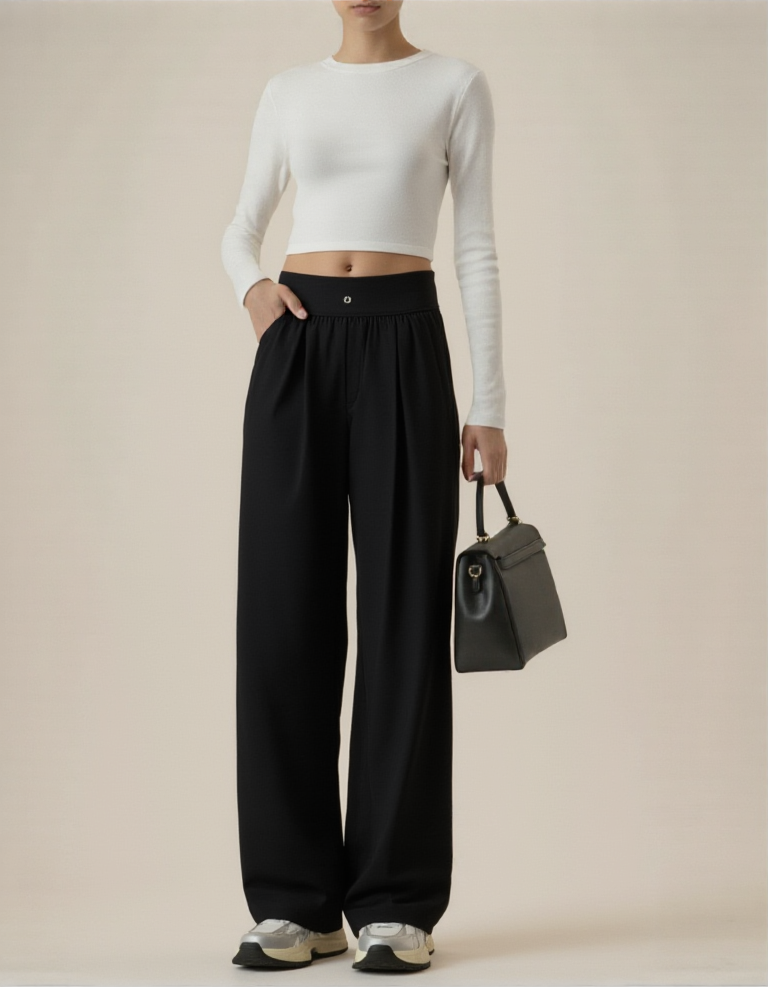 Wide Leg High Waist Pants with Asymmetric Waist Detail