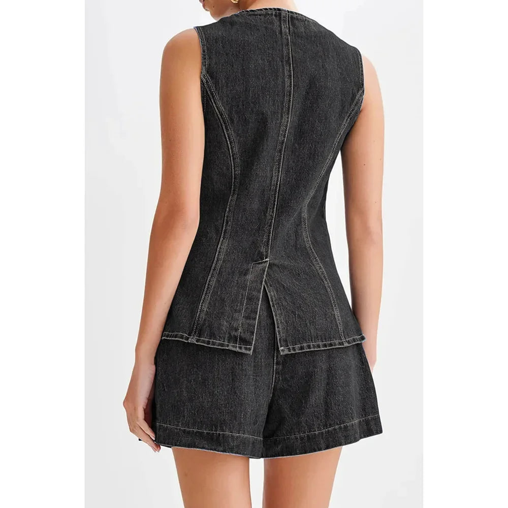 Sleeveless Denim Set with Fitted Top and Matching Shorts