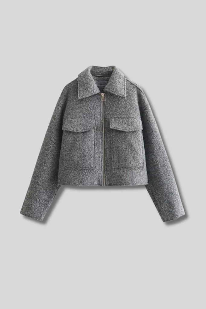 A bomber jacket in a soft wool blend with zipper closure. Designed with a loose fit, classic collar, long sleeves, and front pockets.