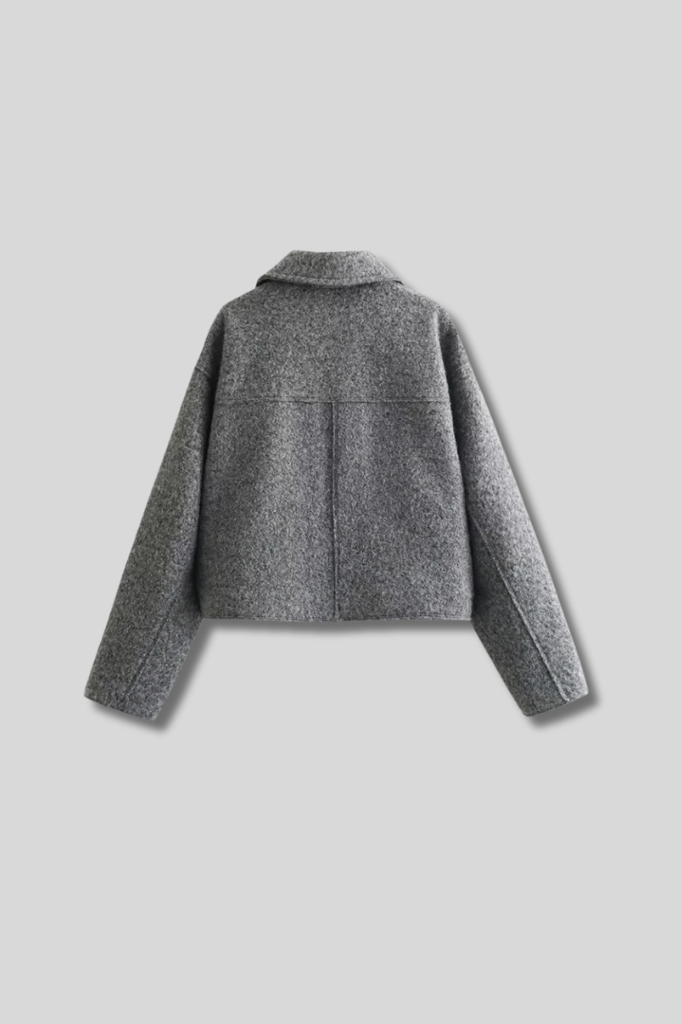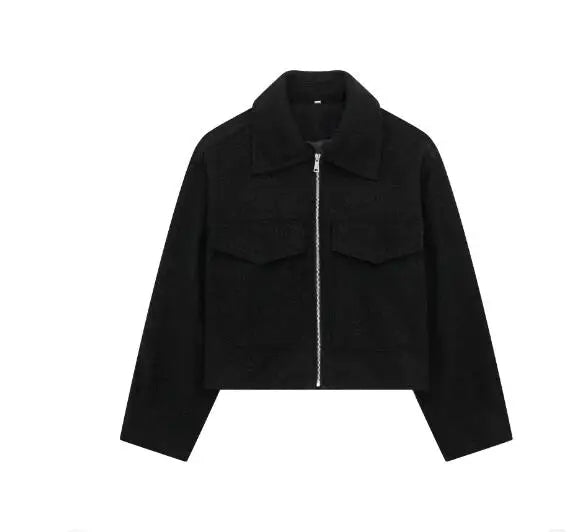 Wool Blend Bomber Jacket with Pockets Zipper Loose Fit