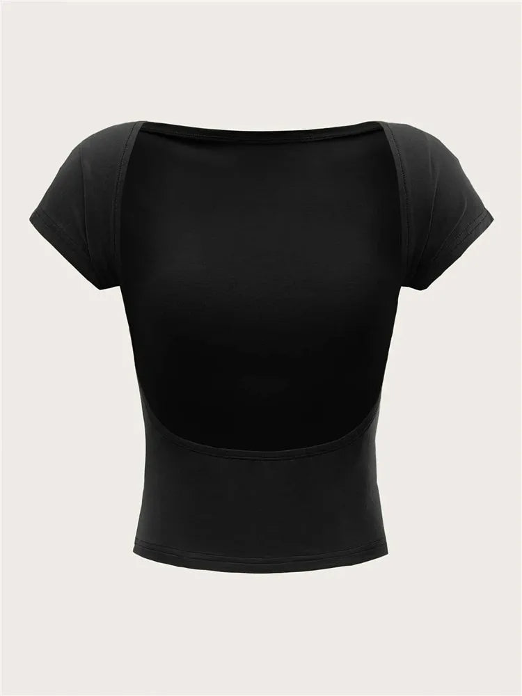 Backless O Neck Crop Top with Short Sleeve Slim Fit