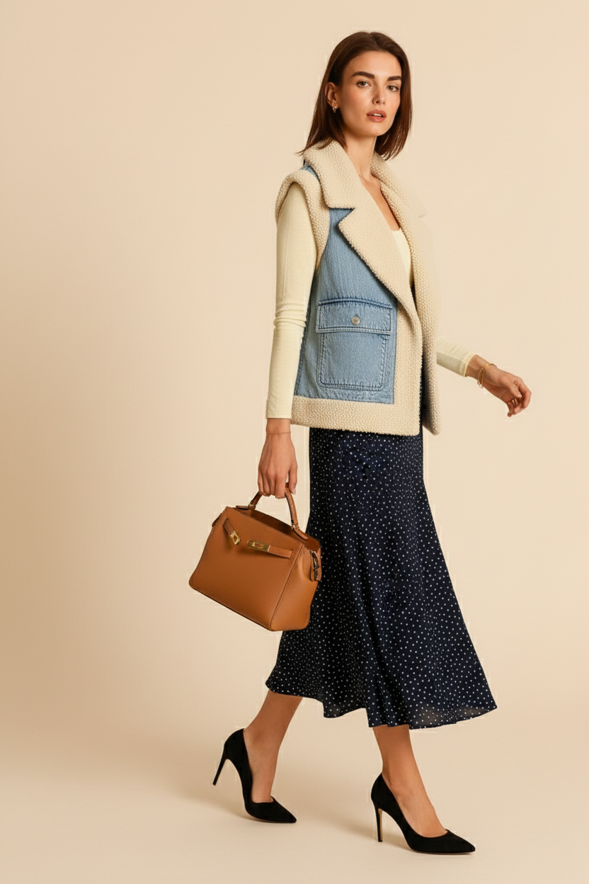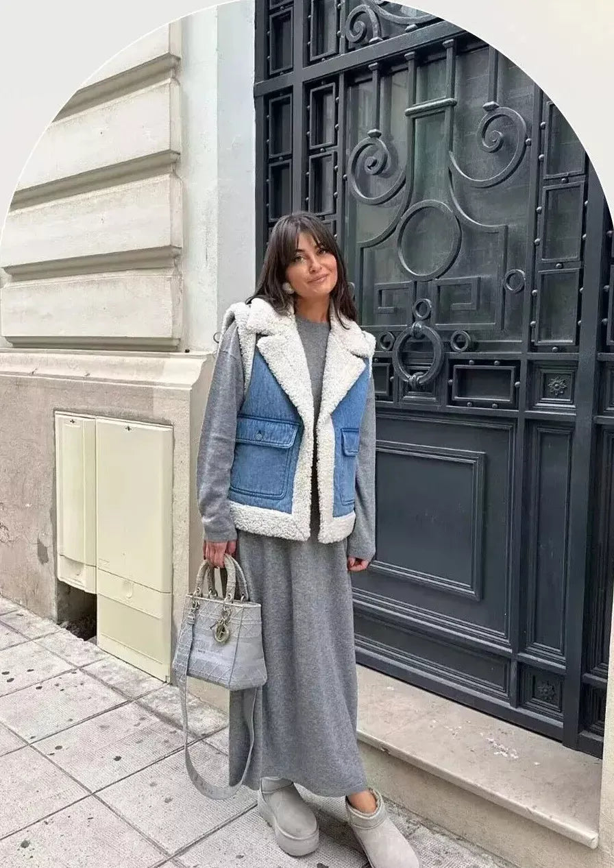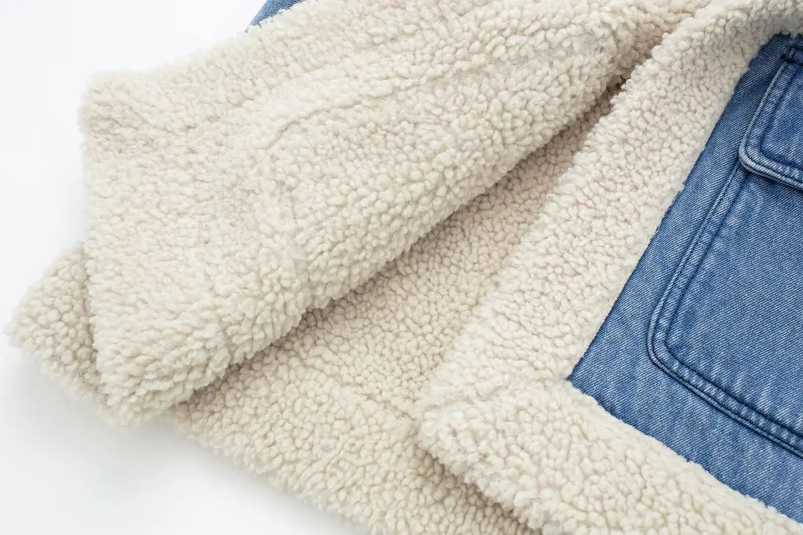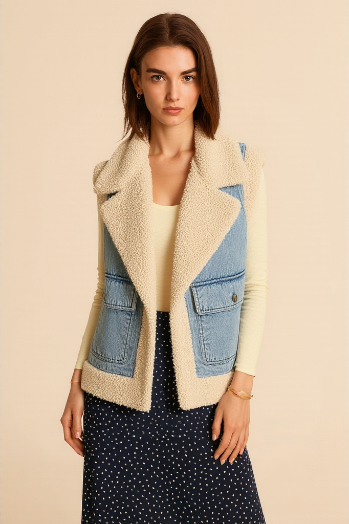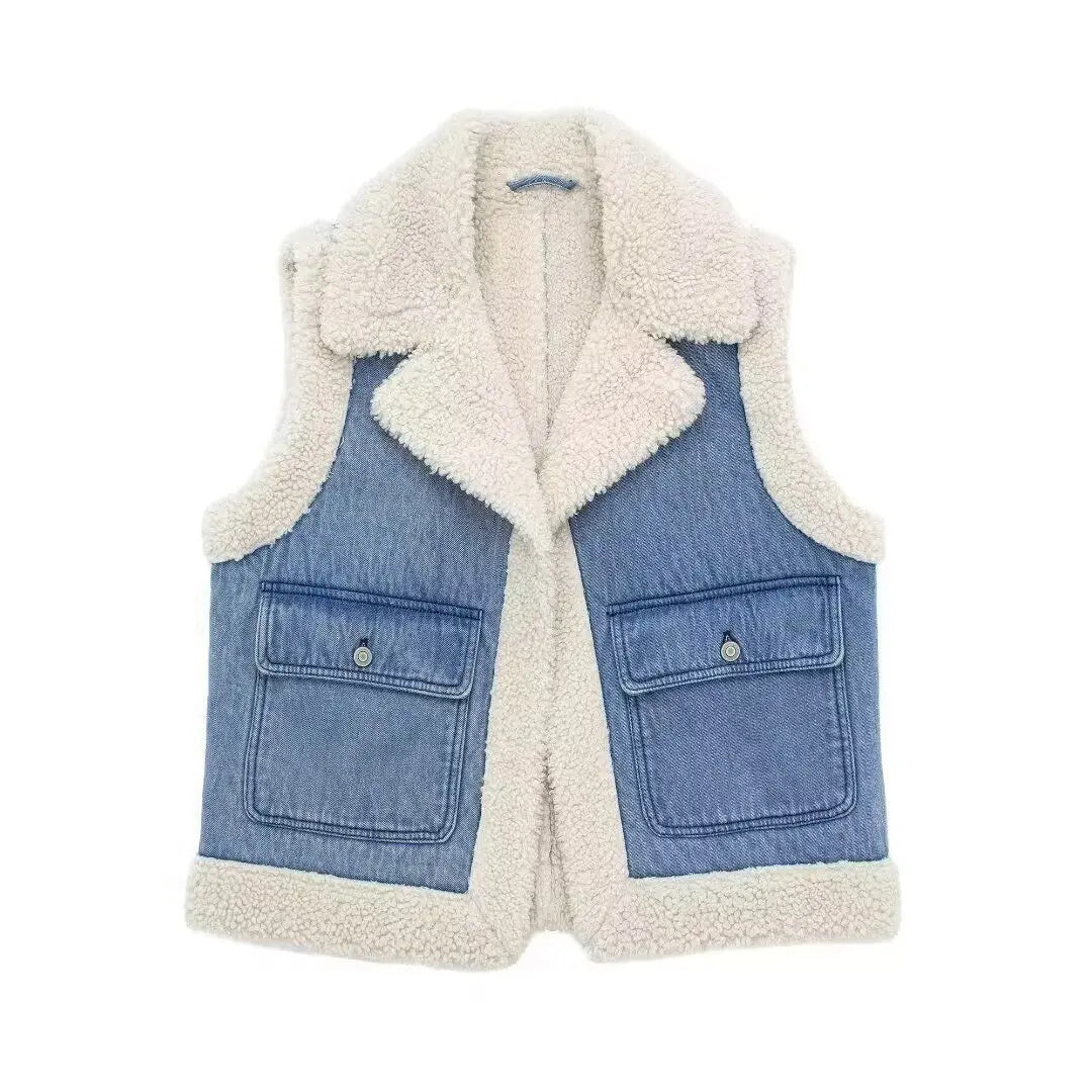Denim Vest with Fleece Lining Collar and Buttons Casual Fit