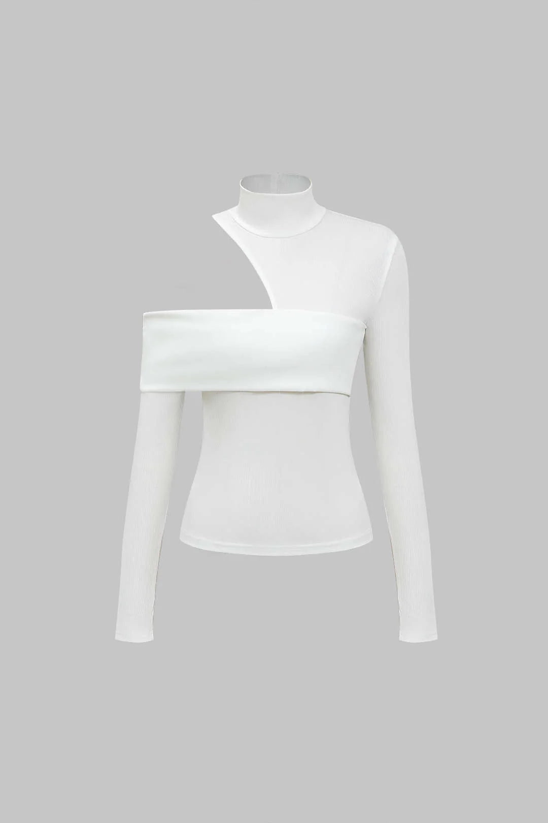 Asymmetric Cutout Ribbed Turtleneck Knit Top